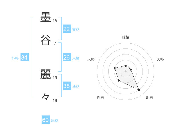 墨谷 麗々さんの地格は38画の4点!