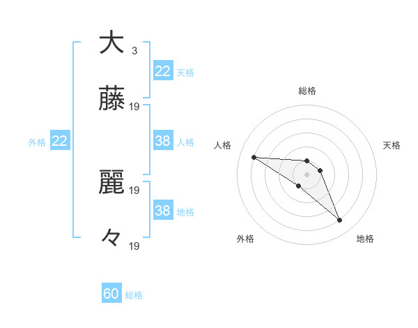 大藤 麗々さんを姓名の画数から五運を鑑定
