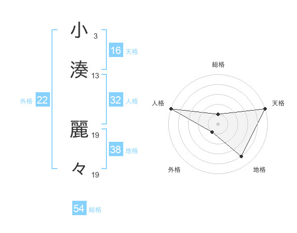 小湊 麗々さんの外格は22画の1点!