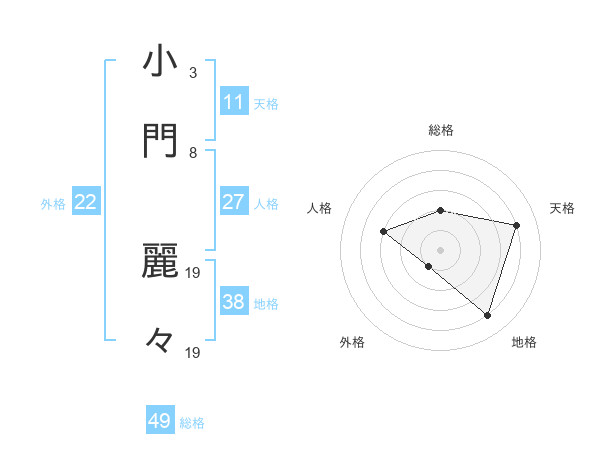 小門 麗々さんの天格は11画の4点!