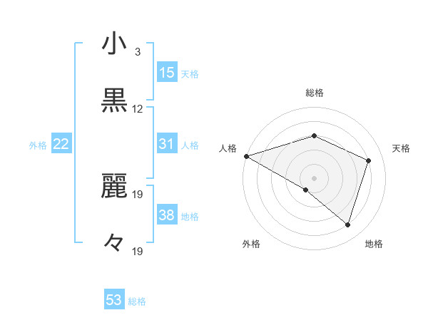 小黒 麗々さんを姓名の画数から五運を鑑定