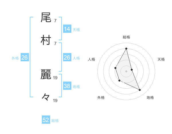 尾村 麗々さんの総格は52画の4点!