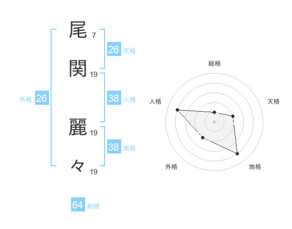 尾関 麗々さんの外格は26画の2点!