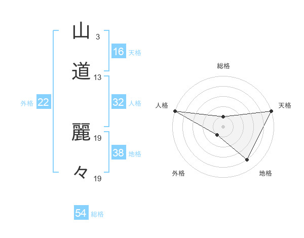 山道 麗々さんの天格は16画の5点!