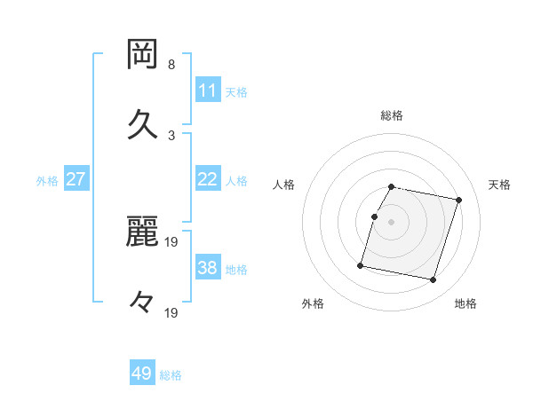 岡久 麗々さんの総格は49画の2点!