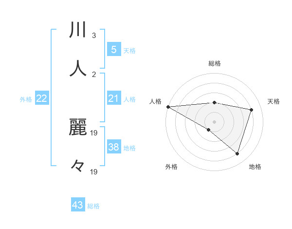川人 麗々さんの天格は5画の4点!