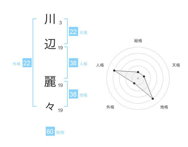 川辺 麗々さんの総格は60画の1点!