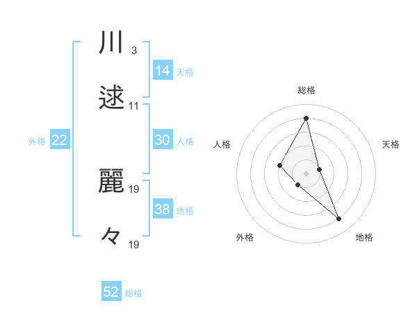 川逑 麗々さんを姓名の画数から五運を鑑定