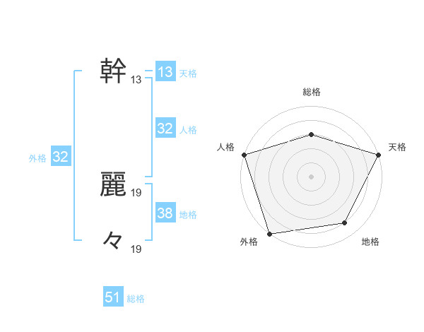 幹 麗々さんの総格は51画の3点!