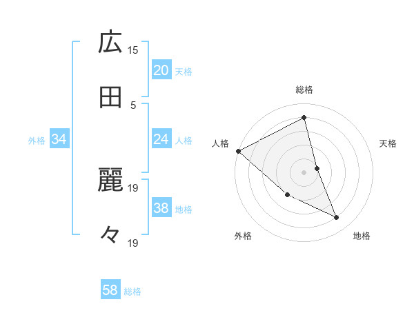 広田 麗々さんの総格は58画の4点!