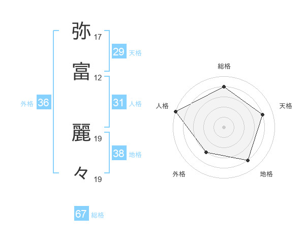 弥富 麗々さんの総格は67画の4点!