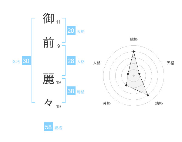 御前 麗々さんの総格は58画の4点!