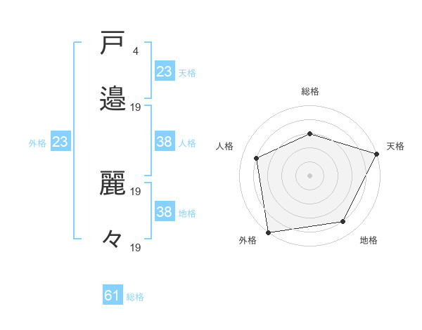 戸邉 麗々さんの外格は23画の5点!