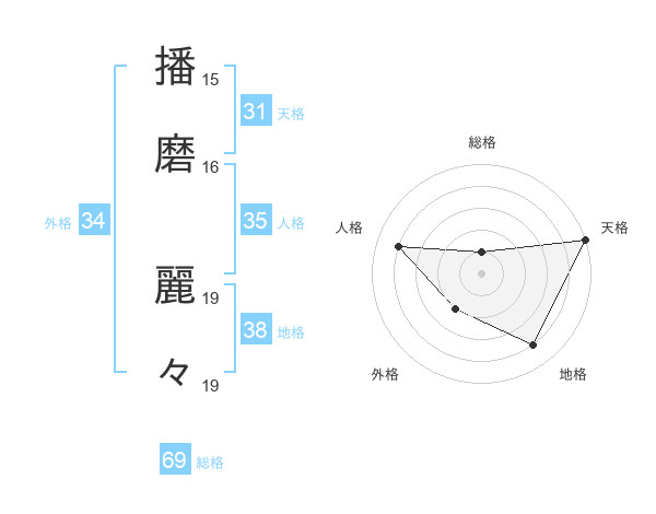 播磨 麗々さんを姓名の画数から五運を鑑定