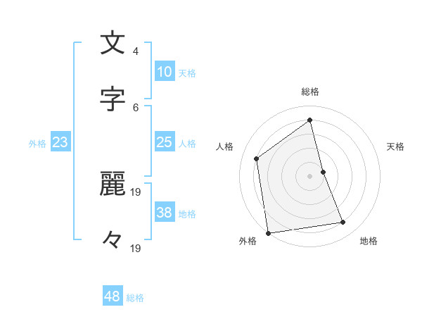 文字 麗々さんの外格は23画の5点!