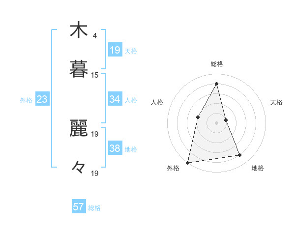 木暮 麗々さんの天格は19画の1点!