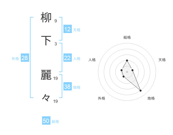 柳下 麗々さんを姓名の画数から五運を鑑定
