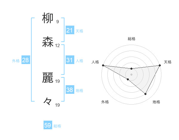 柳森 麗々さんを姓名の画数から五運を鑑定