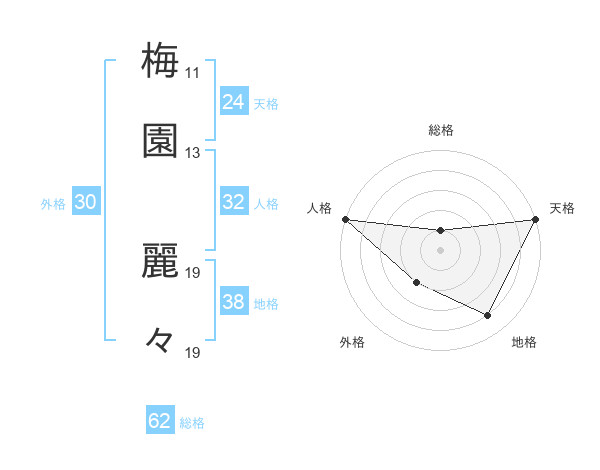 梅園 麗々さんを姓名の画数から五運を鑑定