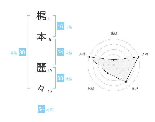梶本 麗々さんの天格は16画の5点!