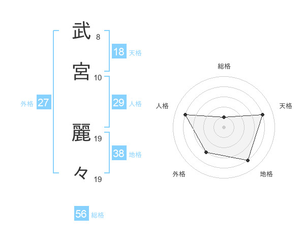 武宮 麗々さんの天格は18画の4点!