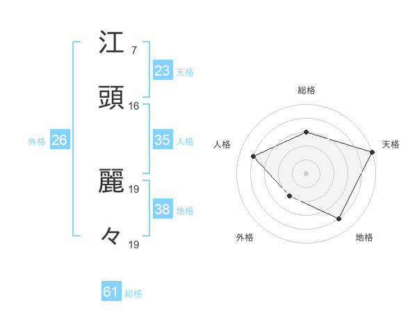 江頭 麗々さんを姓名の画数から五運を鑑定