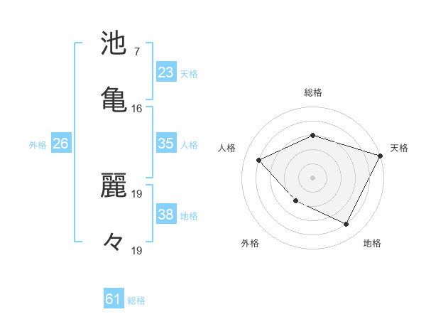 池亀 麗々さんを姓名の画数から五運を鑑定