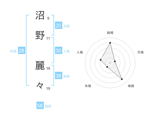 沼野 麗々さんの総格は58画の4点!