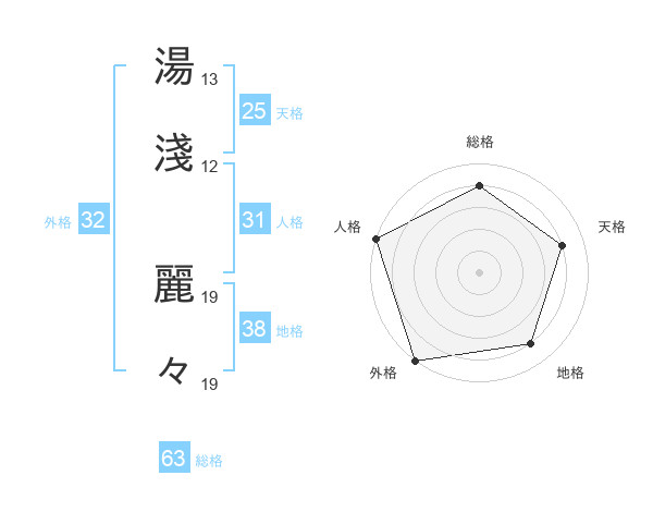 湯淺 麗々さんの総格は63画の4点!