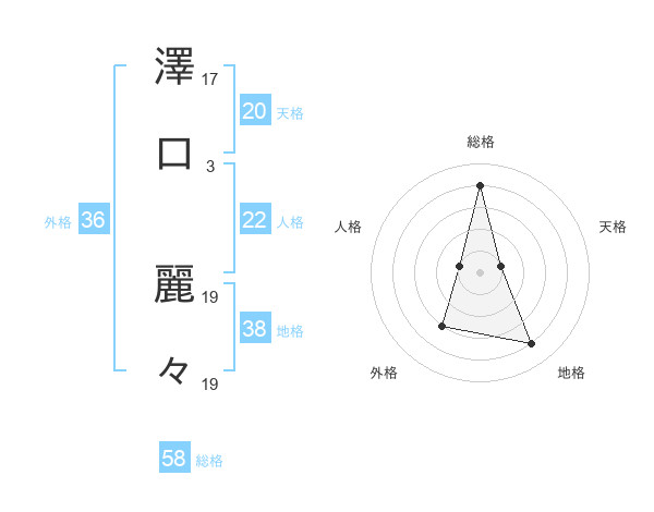 澤口 麗々さんの総格は58画の4点!