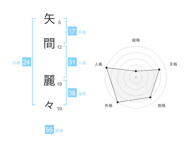 矢間 麗々さんの総格は55画の1点!