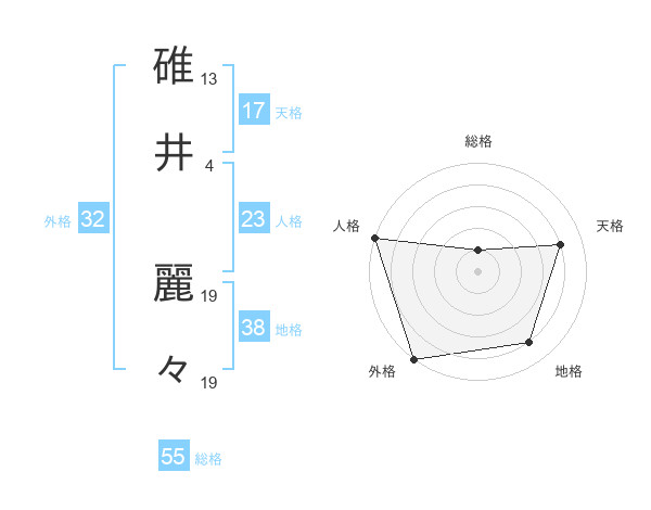 碓井 麗々さんの総格は55画の1点!