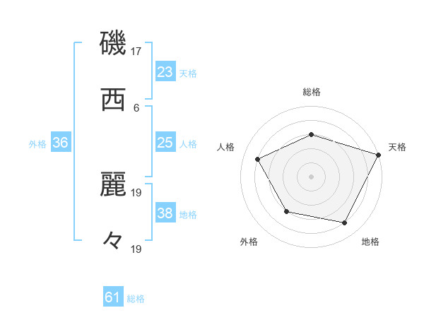 磯西 麗々さんを姓名の画数から五運を鑑定