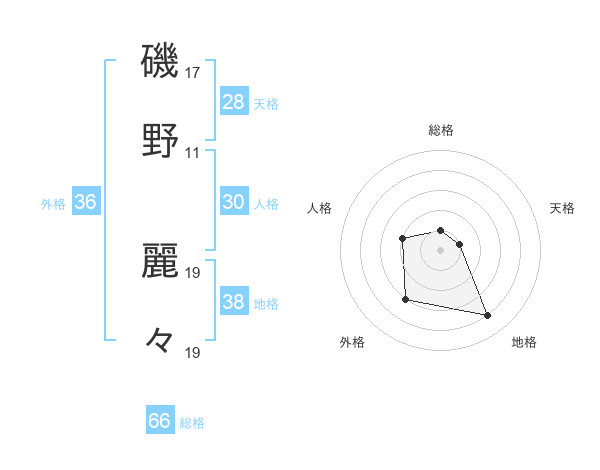 磯野 麗々さんの総格は66画の1点!