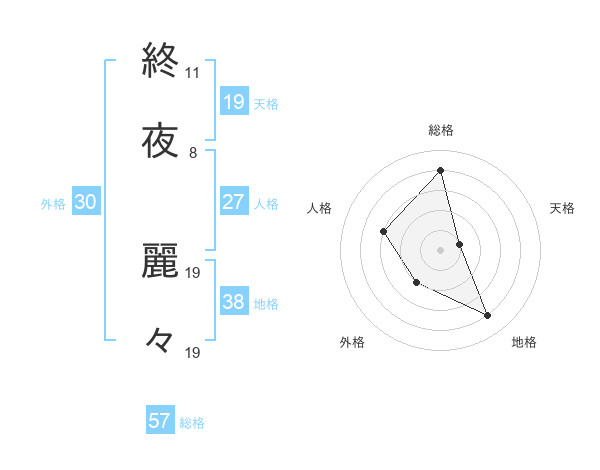 終夜 麗々さんを姓名の画数から五運を鑑定