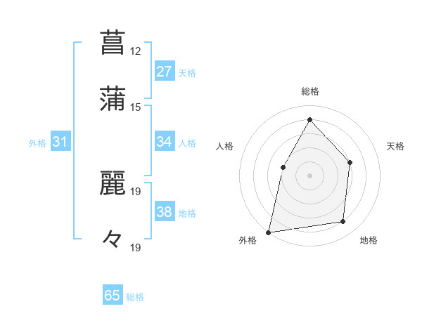 菖蒲 麗々さんの総格は65画の4点!