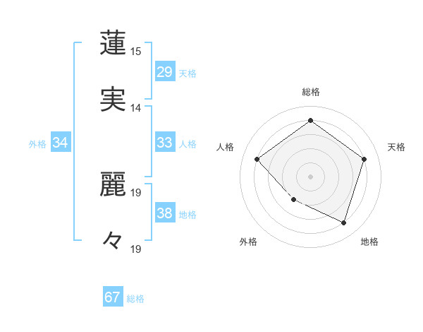 蓮実 麗々さんの総格は67画の4点!