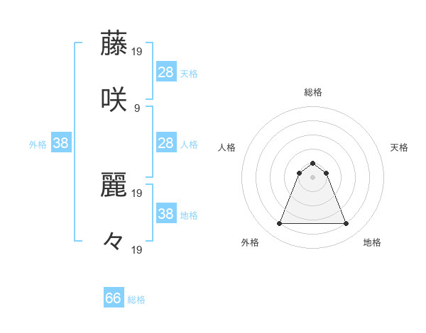 藤咲 麗々さんの外格は38画の4点!