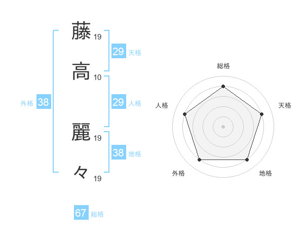 藤高 麗々さんの総格は67画の4点!