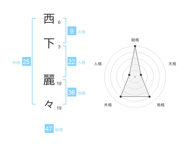 西下 麗々さんの総格は47画の5点!
