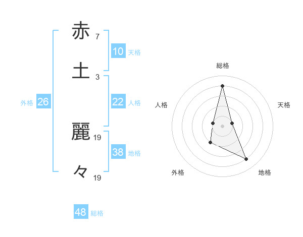 赤土 麗々さんの外格は26画の2点!