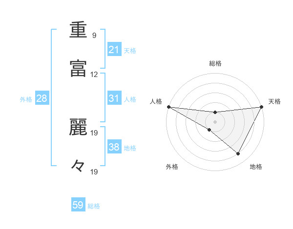 重富 麗々さんの総格は59画の1点!