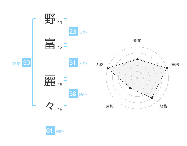 野富 麗々さんの天格は23画の5点!