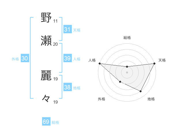 野瀬 麗々さんを姓名の画数から五運を鑑定