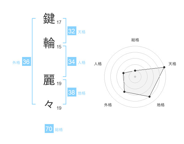 鍵輪 麗々さんを姓名の画数から五運を鑑定