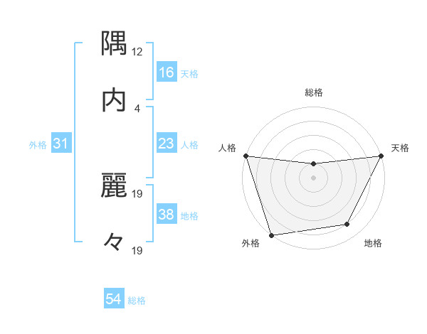 隅内 麗々さんを姓名の画数から五運を鑑定