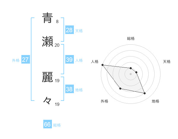 青瀬 麗々さんを姓名の画数から五運を鑑定