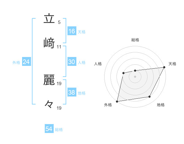 立﨑 麗々さんの天格は16画の5点!