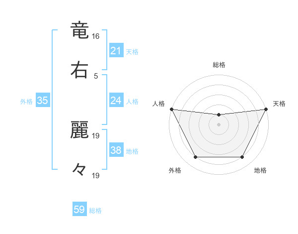 竜右 麗々さんの総格は59画の1点!