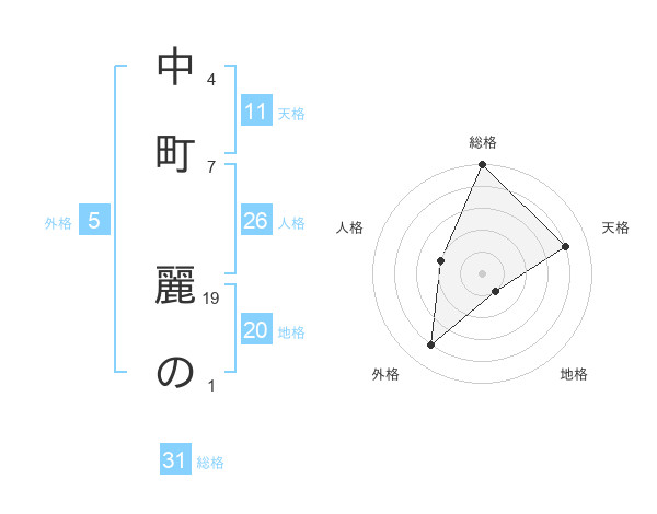 中町 麗のさんの地格は20画の1点!
